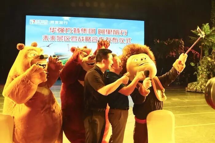 6月22日,华强方特集团与阿里旅行在方特主题公园的发祥地安徽芜湖签署战略合作协议,双方就方特旅游度假区接入包括信用游、当面付、地图导览等在内的“未来景区”全线产品。这是阿里旅行未来景区数量快速扩张到200多家的时候,迎来的又一个行业巨头。 华强方特集团副总裁丁亮在接受行者旅游采访时称,上海迪士尼对国内主题公园的消费市场很有教育意义,国内其他主题公园并不会因上海迪士尼开业而受冲击。“未来5年,我们的乐园数量将翻番,达到40家!”他说。 这位全球排行第八的中国主题公园企业,看来要将触角伸向迪士尼所不能触及的更多市场区域,要用数量和市场分割的大招,来应对踌躇满志的上海迪士尼。 加入未来景区阵营 与消费市场更亲密互动 加入阿里旅行未来景区后,华强方特旗下各乐园就打通了从行前决策到购票入园、园区游玩消费、行后体验分享的消费闭环,通过阿里大生态的消费数据,华强方特还能与消费者做更深层次的互动。 直播被创新性地应用到了此次发布会,美女主播全程直播发布会现场,并直播方特欢乐世界的全程体验。在发布会现场,华强方特旗下主要IP作品《熊出没》中的熊大熊二也做了一回直播“主播”,与华强方特副总裁及阿里旅行李少华一起站在了直播镜头前。